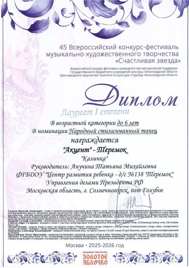 7 декабря воспитанники и воспитатели Центра развития ребенка – детский сад № 138 «Теремок» приняли участие в 45-ом Всероссийском конкурсе-фестивале музыкально-художественного творчества «Счастливая звезда».