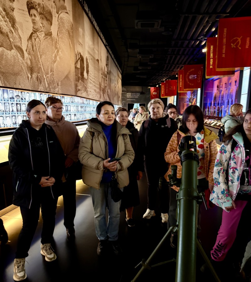 Члены профсоюза Прогимназии № 1 посетили музейный комплекс «Дорога памяти» в парке «Патриот», где прошли 1418 шагов к Победе — ровно столько, сколько дней длилась Великая Отечественная война.