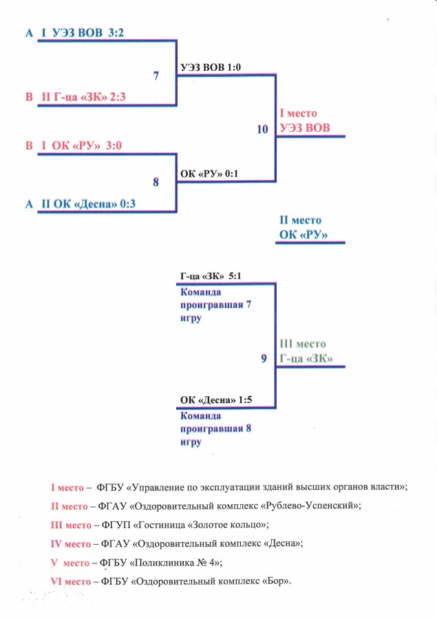 - II место - ФГАУ «Оздоровительный комплекс «Рублево-Успенский»;