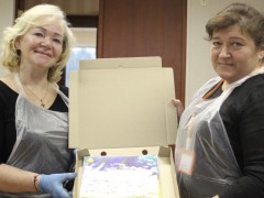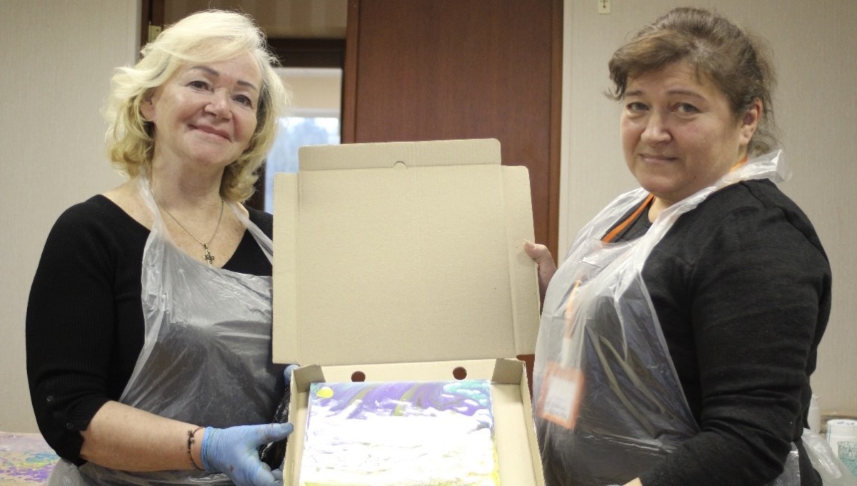 На память о незабываемом, новом творческом опыте маленькие творцы забрали свои картины. Мастер-класс проводила член профкома гостиницы «Золотое кольцо» - Алефтина Сафонова.