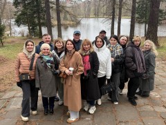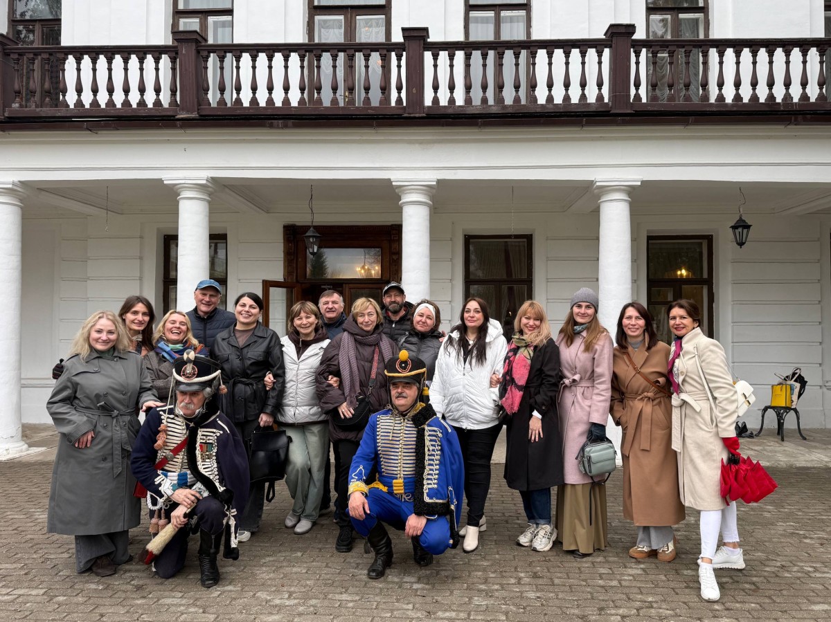 Программа началась с обзорной экскурсии по парадному дому, где рассказали об обмундировании, оружии, быте и подвигах гусаров на любовном и военных фронтах. С удовольствием послушали романсы на стихи М. Лермонтова, А. Пушкина, Д. Давыдова, приняли участие в конкурсах с веером, подковой, картами и мастер-классе по бальным танцам.